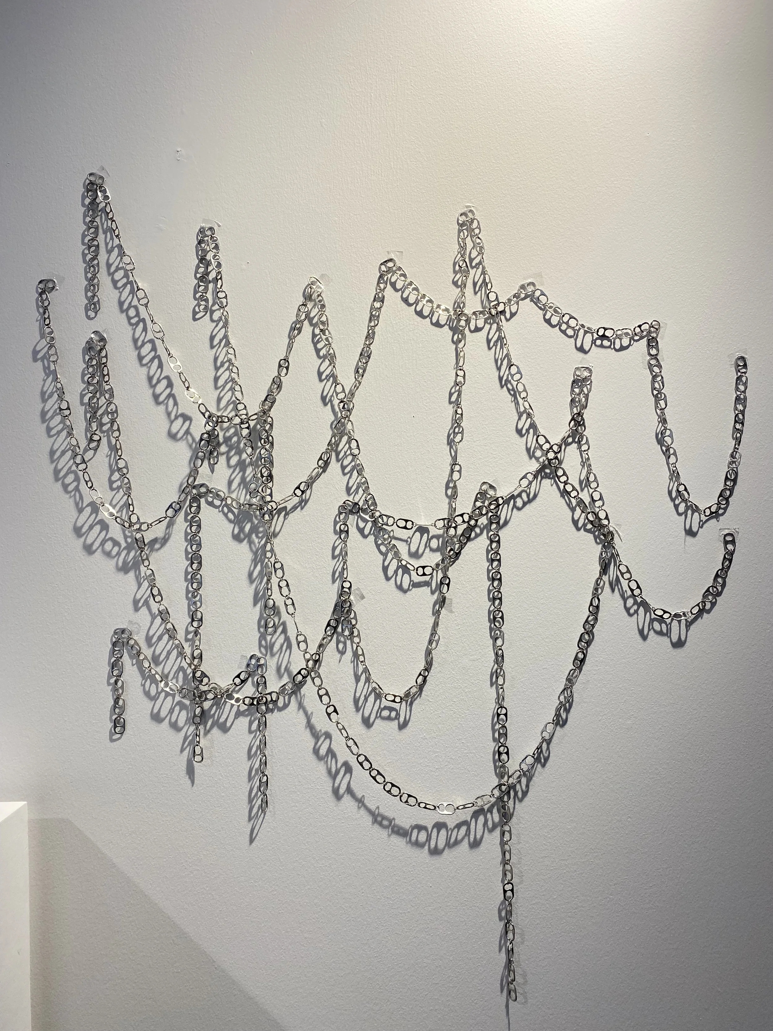 With 454, I embrace consumerism and accept that we heavily depend on it for survival. Being hand sanitizers, food or drink we are constantly consuming in our daily lives in all contexts. I want to show how consumerism shapes our lives and even provides us enjoyment, but it leaves a track over time. Each tab was personally collected from my consumption but mostly others', representing how the consumption can bring people together. The tabs represent a moment in our lives since these were collected in social contexts that are part of several people's lives.