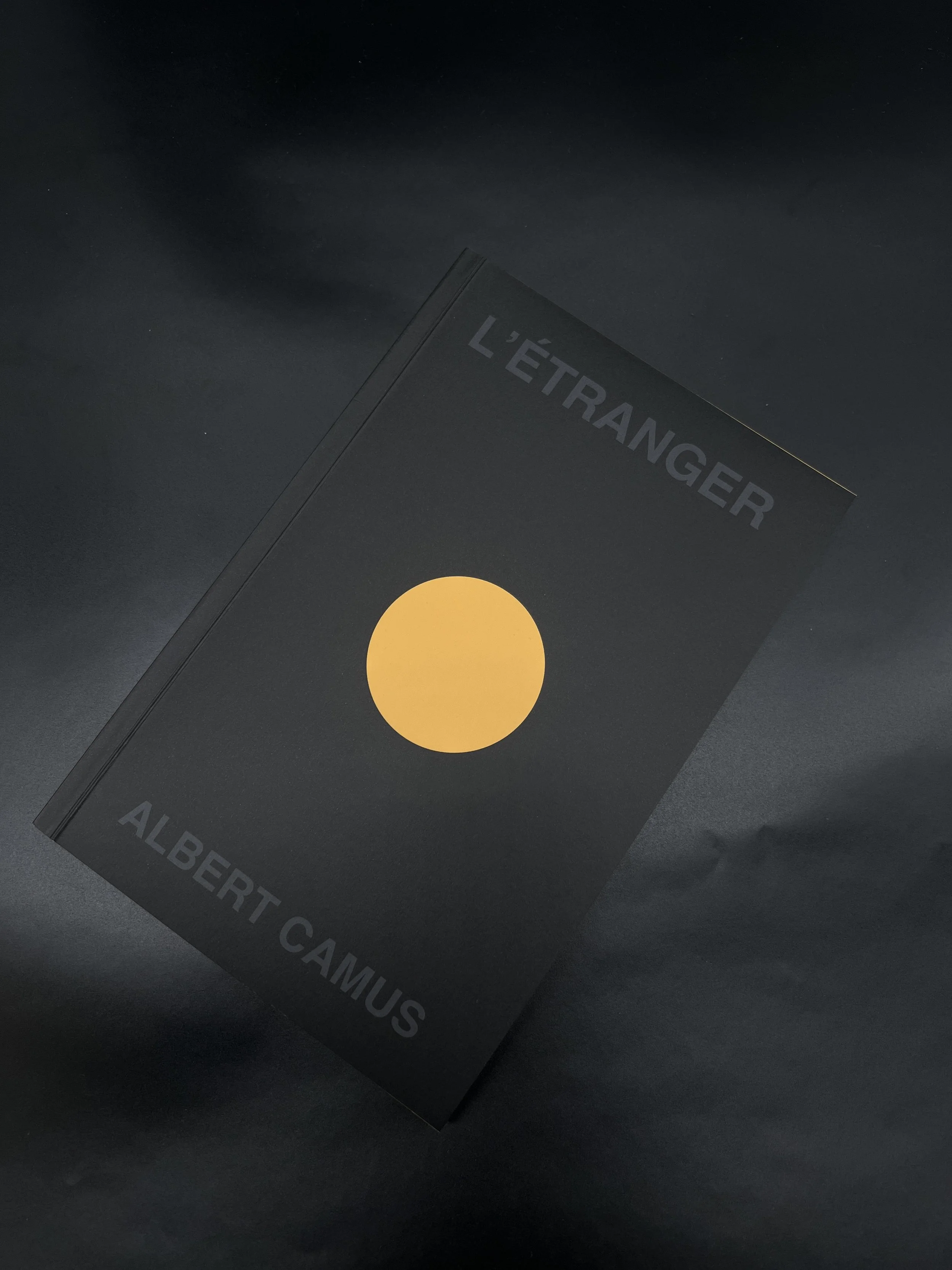 This redesign of L’Étranger translates Camus’ philosophy of absurdism into the physical structure of the book itself. The publication is divided into two distinct parts: one that follows the original linear order of the novel, and a second that deliberately disrupts this sequence, presenting the chapters in disarray. This dual structure mirrors the tension between humanity’s desire for order and the inherent irrationality of the world. Chapter titles are arranged following a solar logic—radiating, shifting, and recurring; to reference the omnipresent sun in the novel, which functions not only as a setting but as an oppressive force shaping Meursault’s actions and emotional detachment. Through controlled typography, rigid grids, and moments of intentional disorder, the book becomes an experiential object: the reader does not simply read absurdism, but physically navigates it.